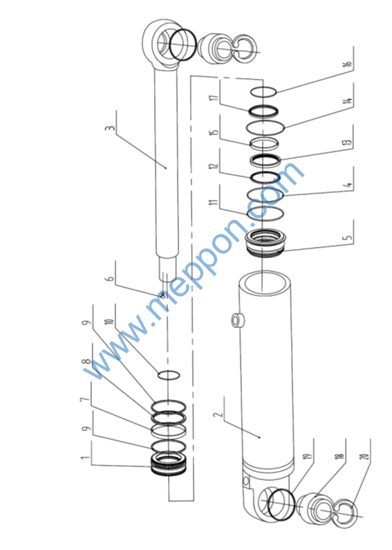 转向油缸 Steering cylinder 活塞 Piston 缸筒总成 Cylinder assembly 活塞杆 Piston rod 挡圈 Retaining ring 导向套 Guide sleeve 螺钉M10X12 Screw bolt 支承环 Support ring 格莱圈D90 Glyd ring 纳污环 Ring O型圈55X3.1 O-ring O型圈82.5X3.55 O-ring 活塞杆缓冲密封件 Piston rod sealing parts 活塞杆密封圈 Piston rod sealing ring O型圈95X3.1 O-ring 复合衬套 Sleeve 弹性挡圈62 Circlip 骨架防尘圈 Dustproof ring 关节轴承GE40ES Joint bearing 防尘圈D40 Dust ring 孔用弹性挡圈62 Hole circlips |