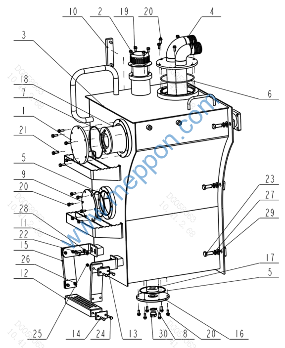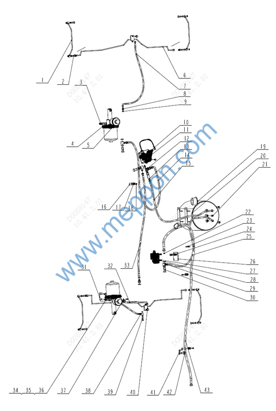 液压油箱总成 Engine tank assy. 滤芯顶盖 Top cover 加油滤清呼吸器 Breather valve 箱体 Tank body 吸油管总成 O型圈 O-ring O型圈 O-ring O型圈 O-ring 组合垫圈27 Combined washer 法兰盘 Ring plate 液位计 Level indicator 支撑板 Mounting plate 踏板 Pedal 固定压板 Pressing plate 固定压板 Pressing plate 拉带 Drawstring 清洗口法兰 Flange 磁铁 Magnet 回油滤芯 Oil return filter 螺栓M8X16 Bolt 螺栓M8X20 Bolt 螺栓M8X25 Bolt 螺栓M12X25 Bolt 螺栓M16X40 Bolt 螺栓M8X35 Bolt 螺母M8 Nut 弹簧垫圈8 Spring washer 弹簧垫圈16 Spring washer 平垫圈12 Flat gasket 平垫圈16 Flat gasket 螺塞M27X2 Plug screw |