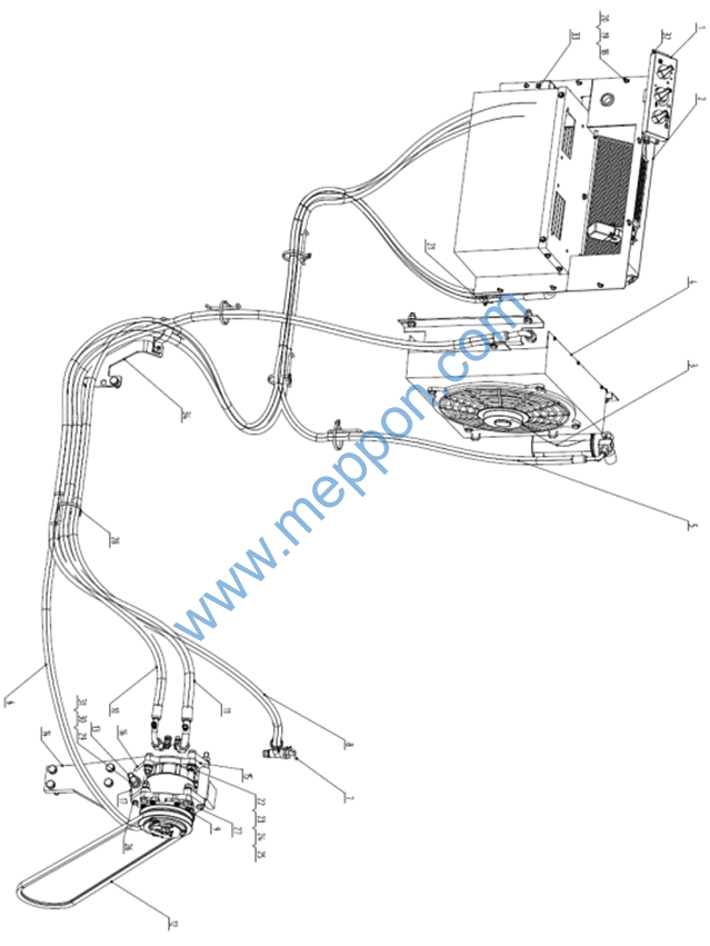 空调系统总成 Air Conditioner assembly 控制面板组件 蒸发器总成 冷凝器至干燥罐高压胶管 Hose 冷凝器总成 Condenser 蒸发器至储液器高压胶管 Hose 暖风回水管 Hose 水阀NPT3/8 Switch 暖风进水管 Hose 压缩机 Compressor 压缩机至冷凝器高压胶管 Hose 蒸发器至压缩机低压胶管 Hose 皮带 Belt 涨紧螺栓 Bolt 底板组件 Plate 支撑板 Plate 固定板 Plate 调整块 Adjust block 弹簧垫圈8 Washer 螺钉M8X25 Bolt 平垫圈8 Washer 卡箍16-25 Clip 螺母M10 Nut 平垫圈10 Washer 螺栓M10X45 Bolt 弹簧垫圈10 Washer 螺栓M10X25 Bolt 螺栓M10X140 Bolt 箍 Clip 螺母M16 Nut 平垫圈16 Washer 弹簧垫圈16 Washer |