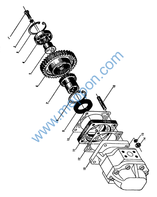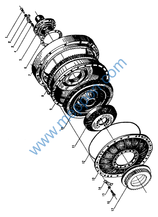 螺栓M10X30ZnD Bolt 垫圈 10 Spring washer 垫片 Washer 销 A10×20 Pin 泵壳轴 Shaft 垫 Washer 齿圈 Gear ring 螺钉 M10×1×60 Screw 泵壳 Pump 涡轮 Turbine 导轮 Stator O形密封圈 O-ring 泵轮 Pump 垫片 Washer 垫圈 8 Spring washer 螺栓 M8×25 Bolt 齿轮 Gear |