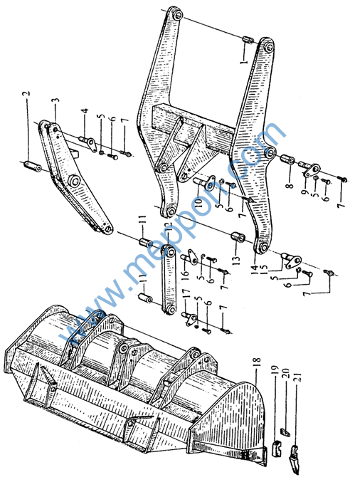 轴套 轴套 摇臂组件 铰销组件 垫圈 12 螺栓 M12×20·ZnD 油杯 M10×l 轴套 铰销组件 铰销组件 轴套 拉杆组件 轴套 动臂组件 铰销组件 铰销组件 铰销组件 铲斗 铲斗齿套 斗齿固定销 铲斗齿 |