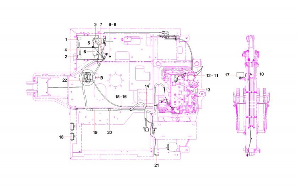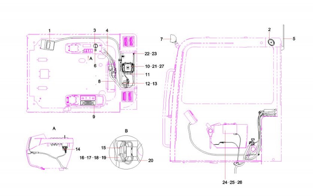 挖掘机电气系统装配图 (Drawing, assembly, electrical system)