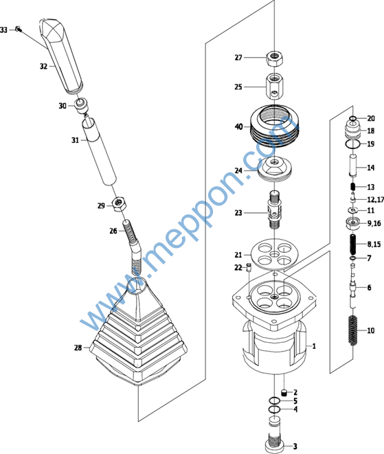左手柄 螺栓M4×12 拉杆(深灰色)垫圈 10 螺栓M10×25 行走先导阀总成右手柄 |